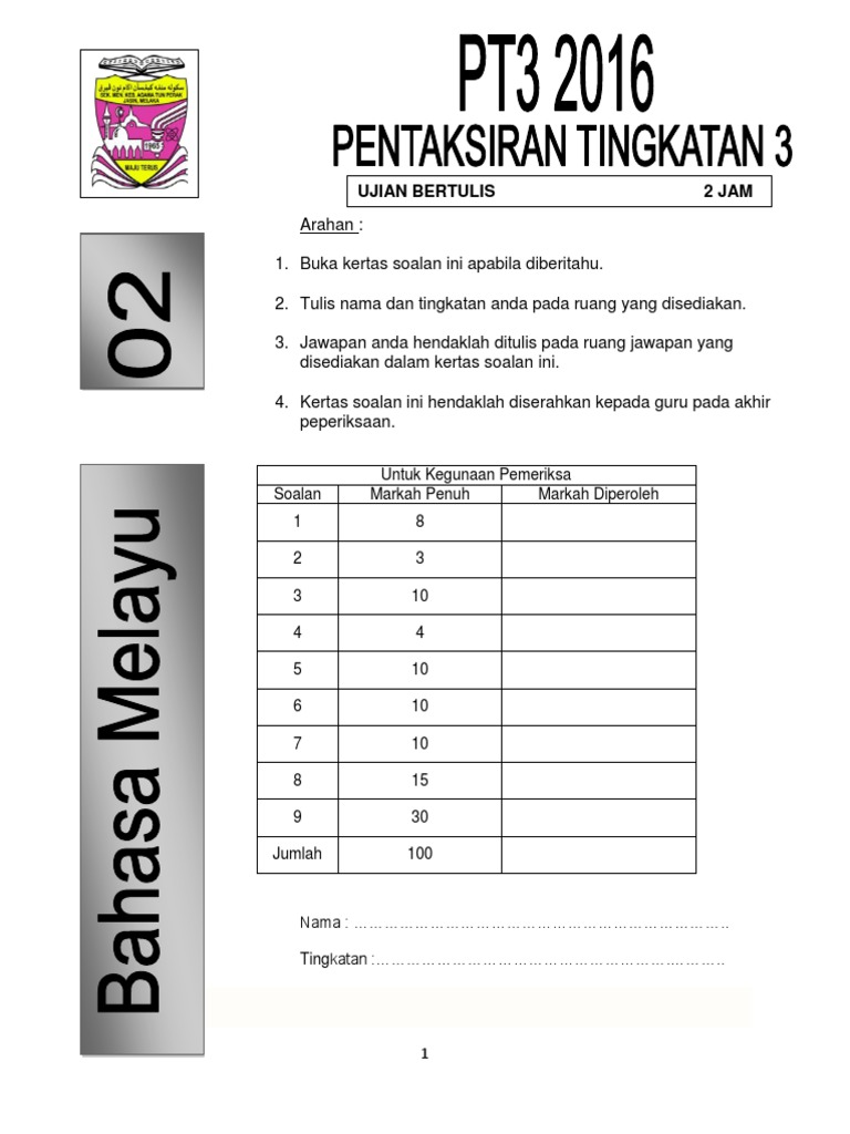 Soalan Pt3 2016 Bahasa Melayu Braylonctx